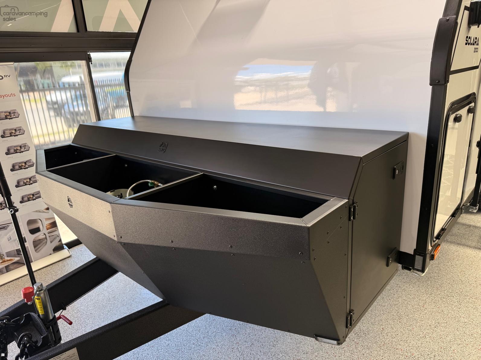 TB38 Toolbox with Visor, Large Dual Slides & 12v Anderson Plug or TB32S Toolbox with 12V Anderson Plug, 1 Long Slide & Hinged Gas Cylinder Compartment