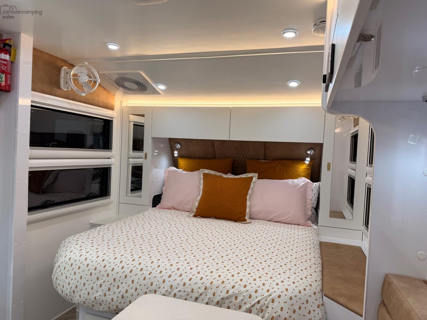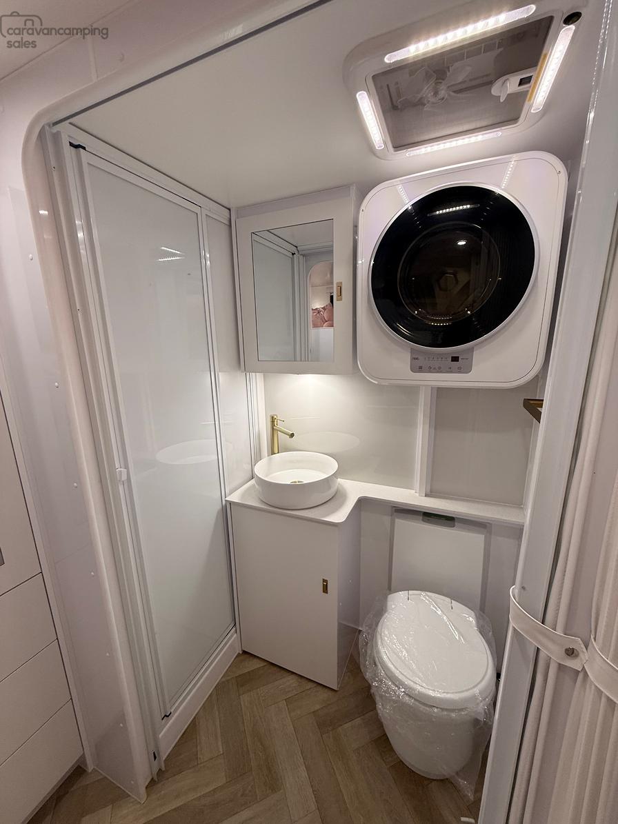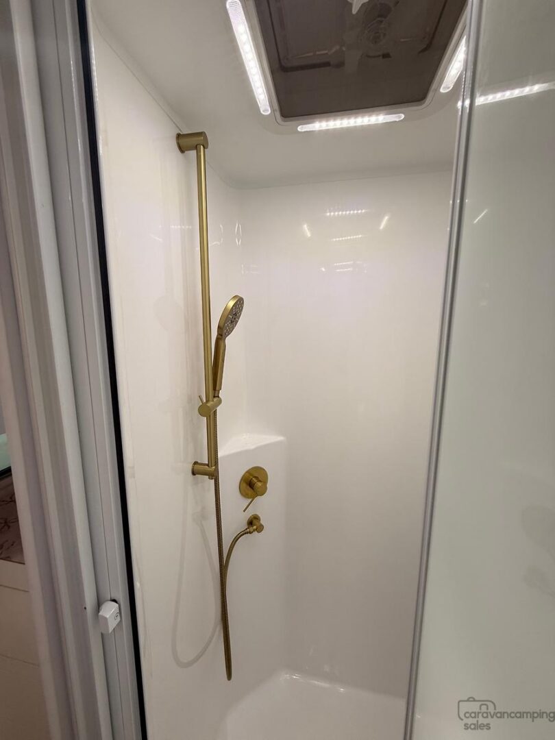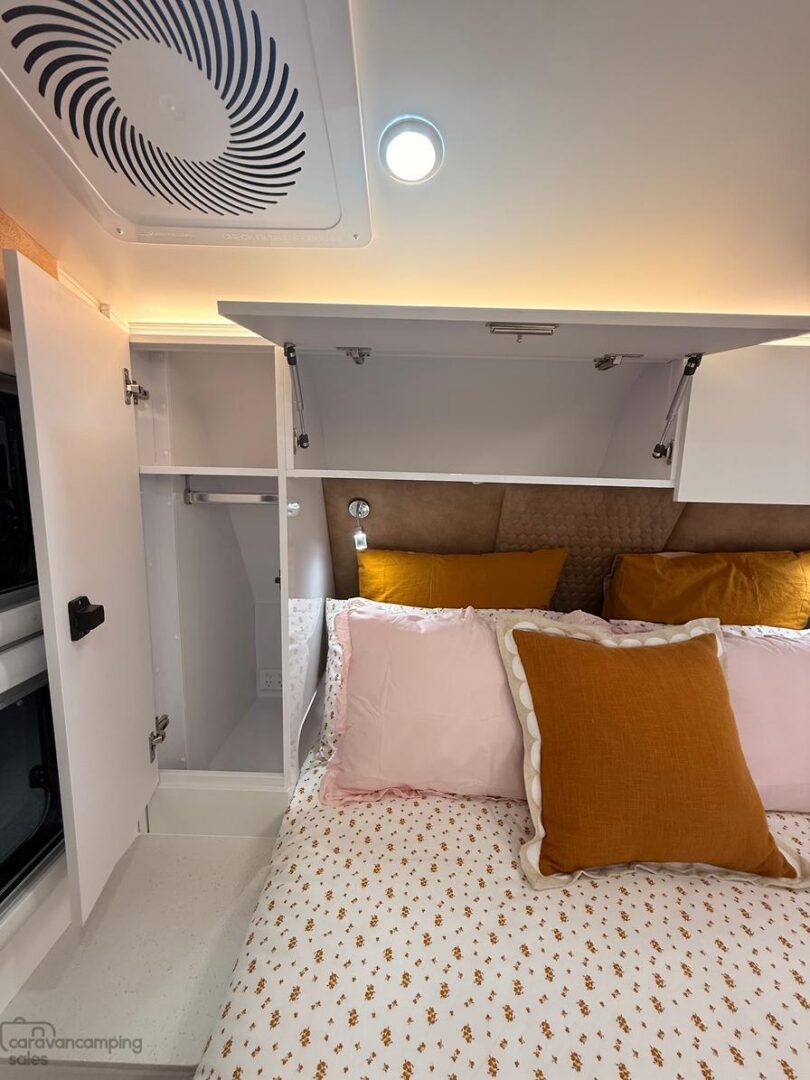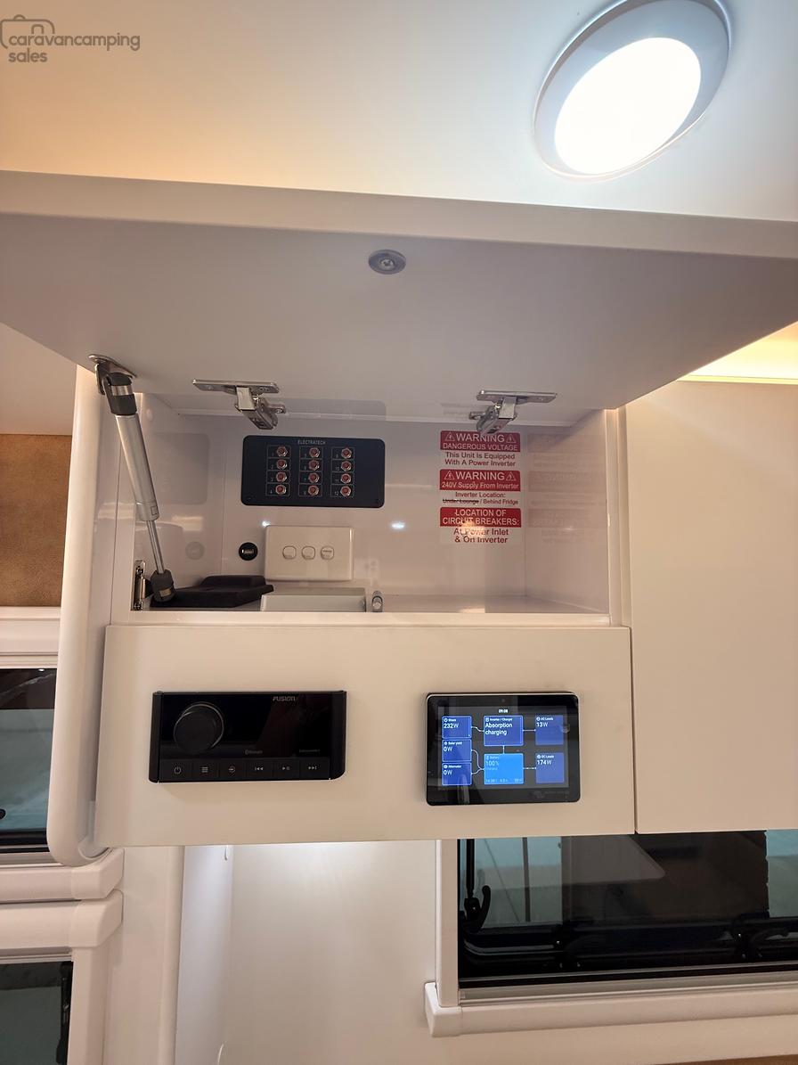 6 External Lights: 17″ Lightbar Front & Rear, 3 x Insect Repellent 2 Stage LED Lights Door side Inc Over BBQ & 1 Roadside LED 3″ Downlights & Reading Lights